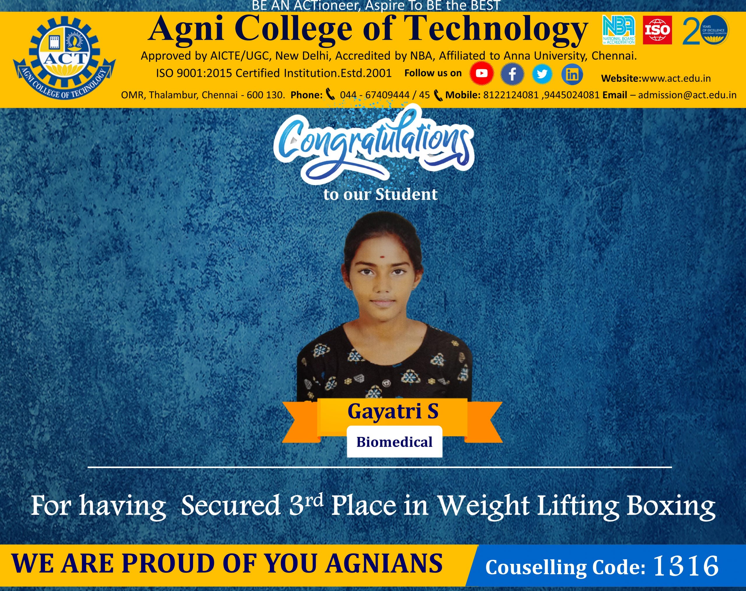 Student from ACT Won Third Prize in Tamilnadu State Level Lifting Championship Read More » December 7, 2021