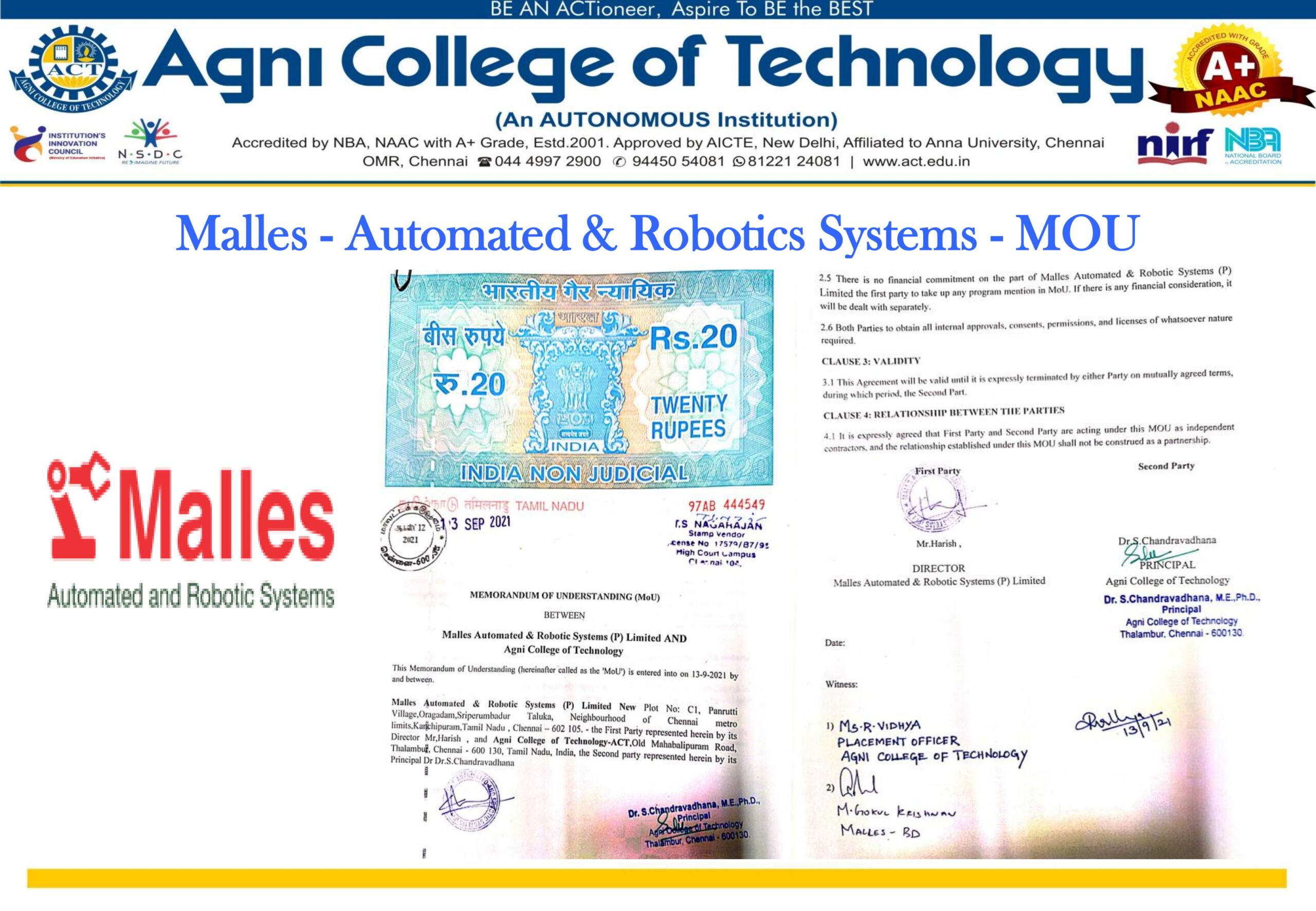 The CoEs at Agni College of Technology are an integral part of the college’s commitment to providing students with a high-quality education that prepares them for success in the global economy. The CoEs help students to develop the skills and knowledge they need to be successful in their careers, and they also contribute to the advancement of knowledge and innovation in engineering and technology. For establishing the CoE the MoU is signed between Agni college of Technologies and other leading Industries