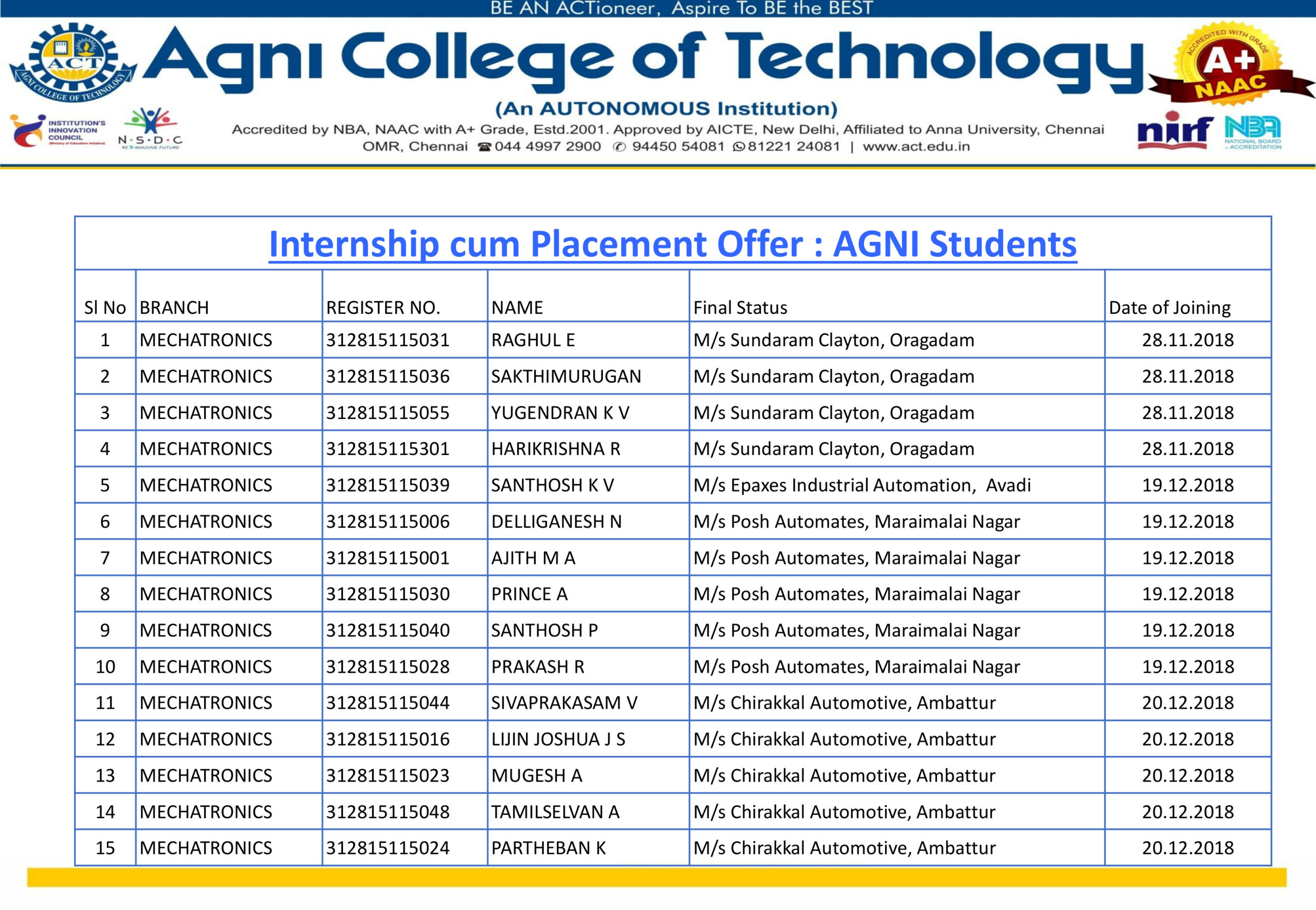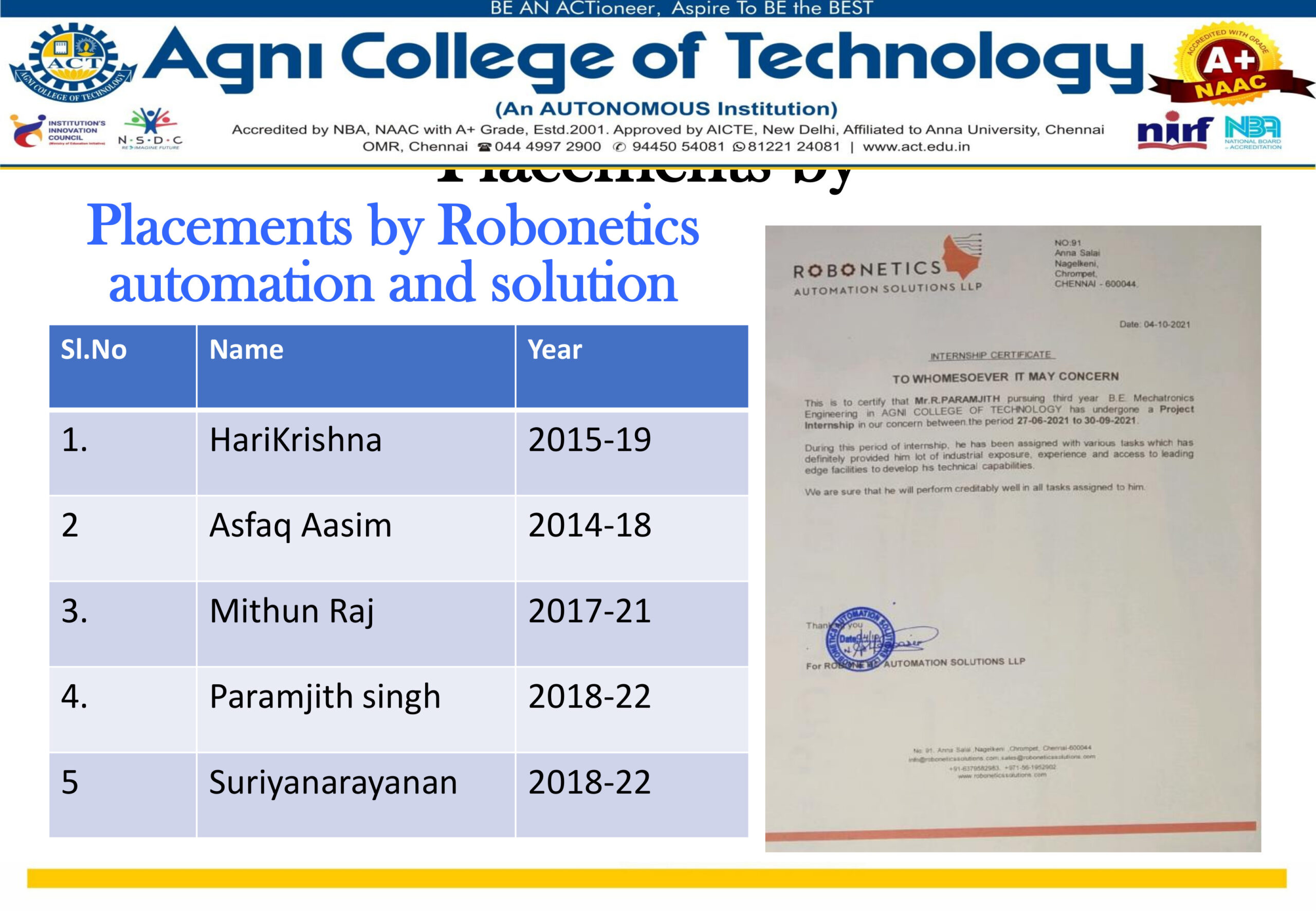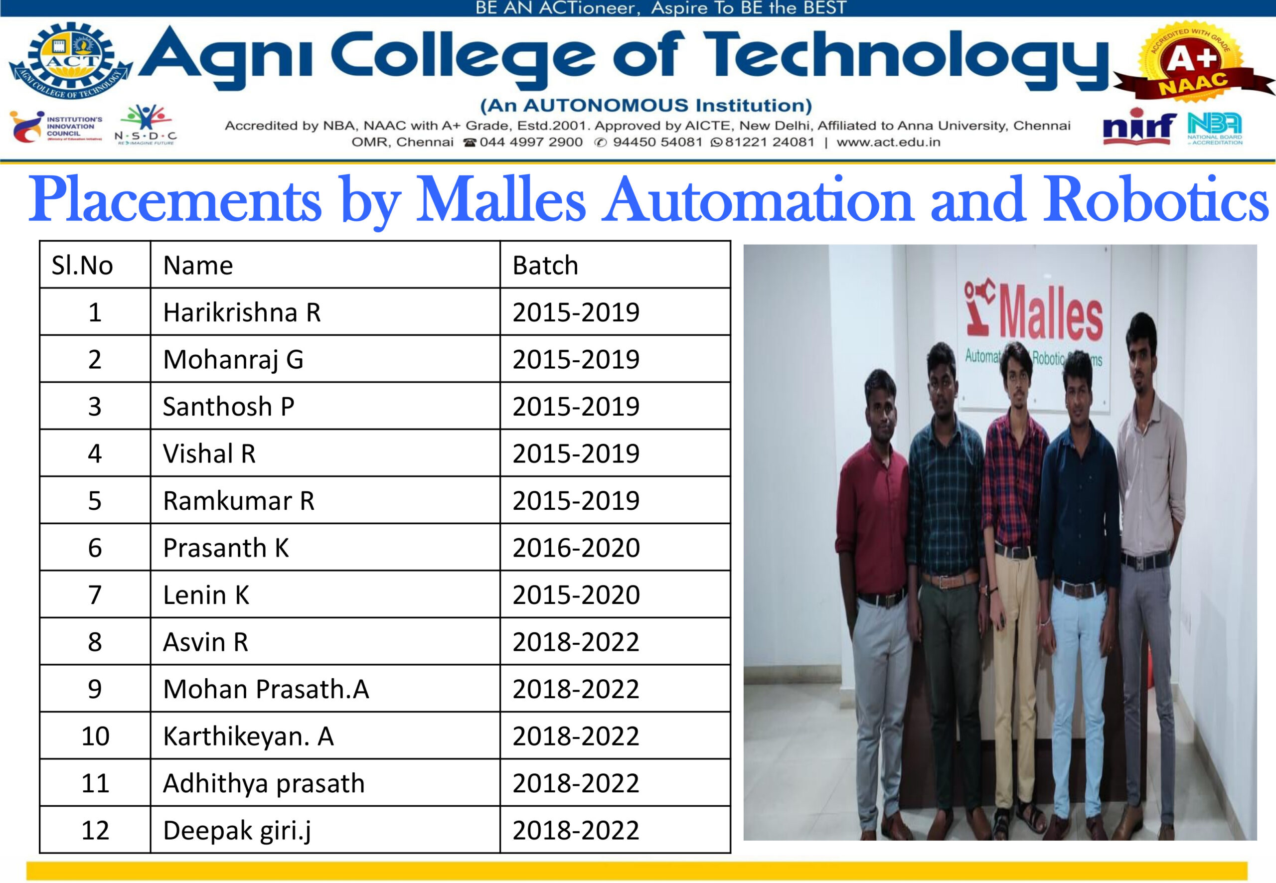 | 3 | Mechatronics Engineering | Malles automation Pvt.Ltd |