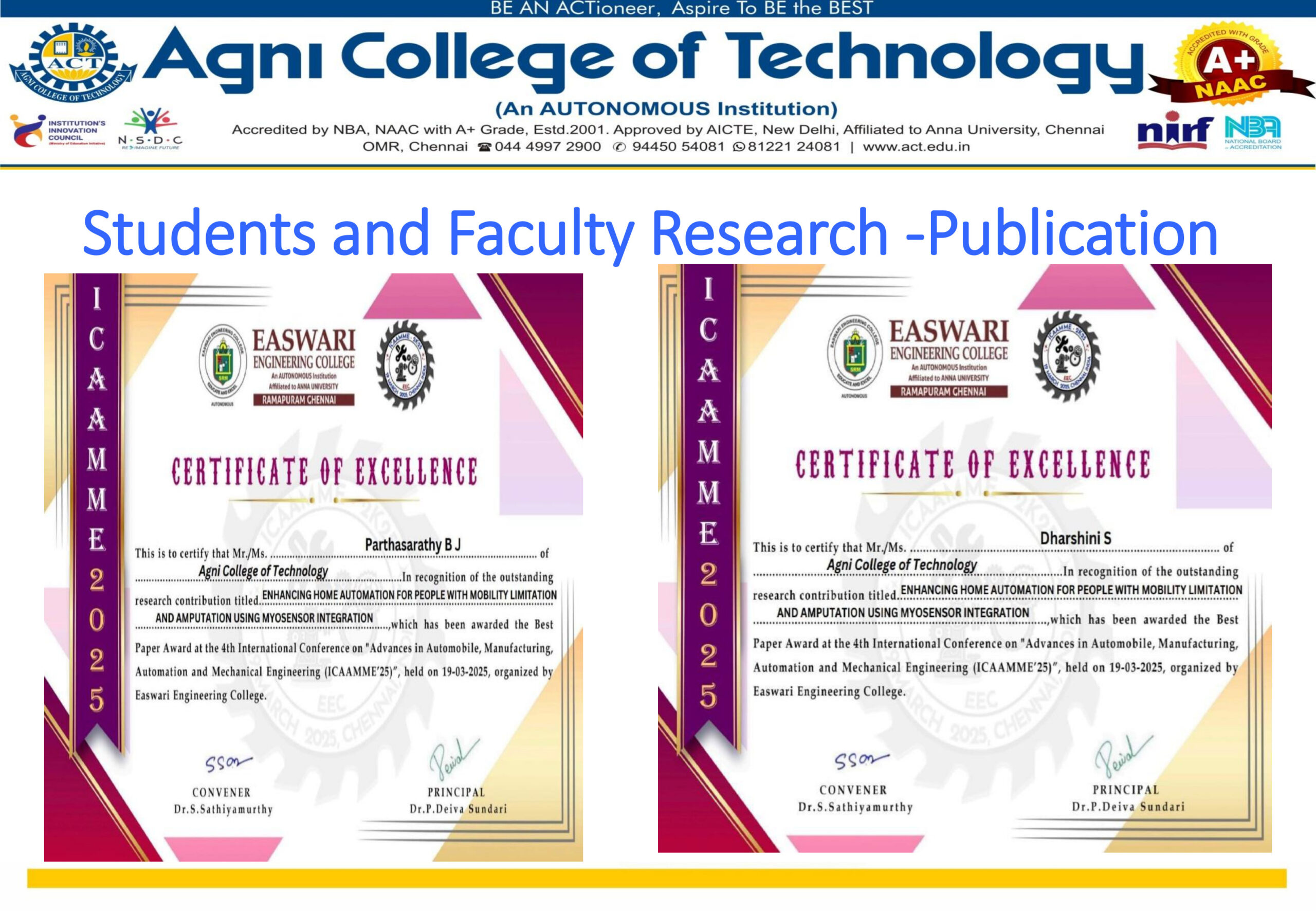The Centers of Excellence (CoEs) at Agni College of Technology are successfully achieving their goals of providing students with the latest industry-relevant knowledge and skills, bridging the gap between academia and industry, and fostering innovation and entrepreneurship. This is evidenced by the strong student placements, research publications, industry awards, and startups that have emerged from the CoEs.