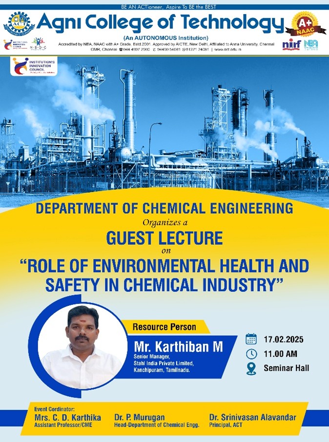 Guest Lecture on Role of Environmental Health and Safety in Chemical Industry Read More » February 17, 2025
