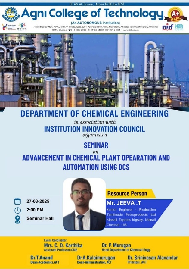 Seminar on Advancement in Chemical Plant Operation and Automation using DCS Read More » March 27, 2025
