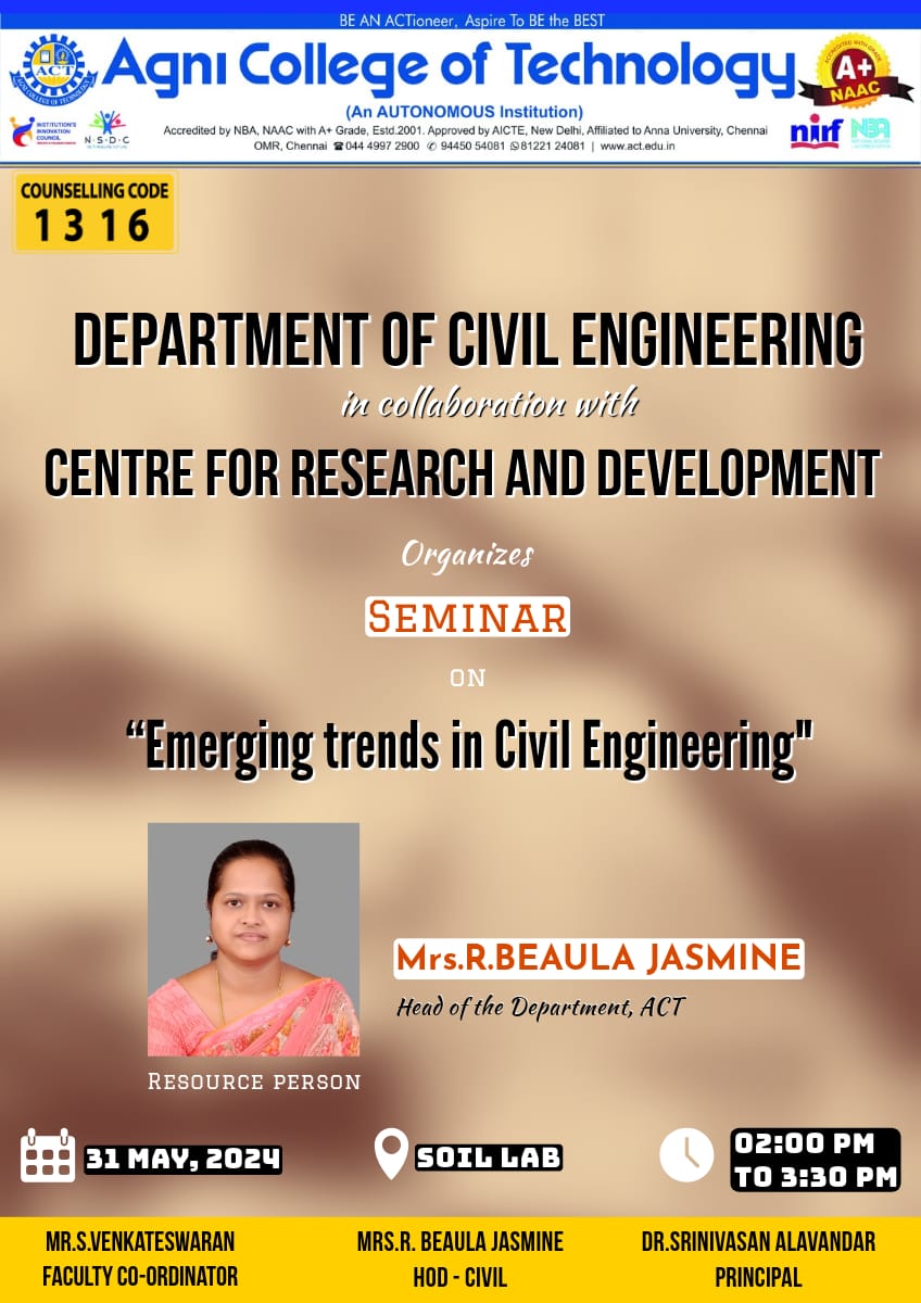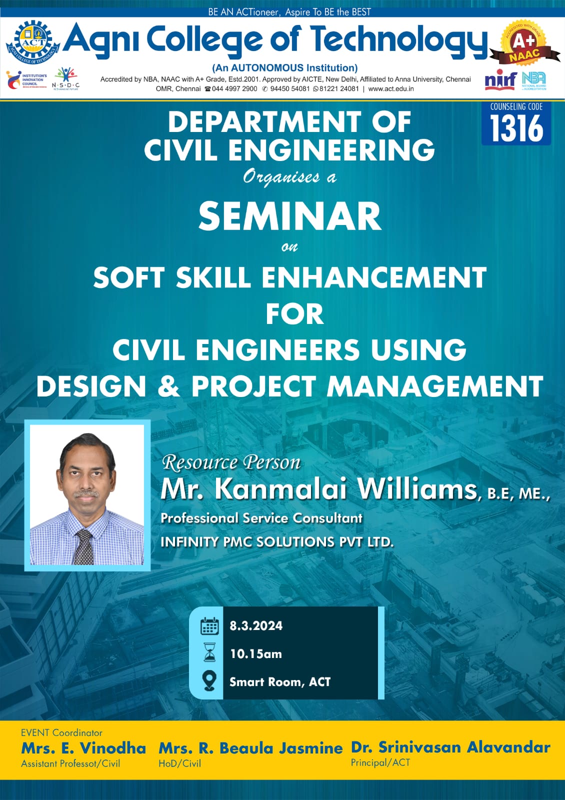 Seminar on Soft Skill Enhancement for Civil Engineers using Design & Project Management Read More » March 8, 2024