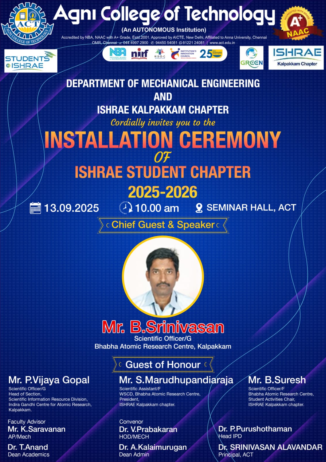 Industrial Visit to Indian Space Research Organization (ISRO) Satish Dhawan Space Centre (SDSC) SHAR Sriharikota Range PO-524.124 Nellore District, Andhra Pradesh Read More » November 3, 2023