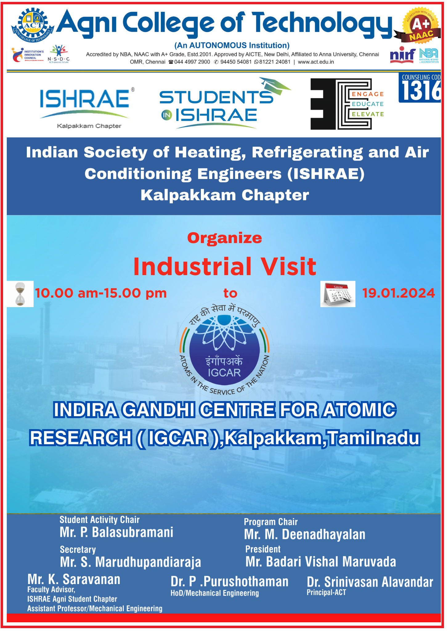 Industrial Visit to Indira Gandhi Centre for Atomic Research (IGCAR), Kalpakkam Read More » January 19, 2024