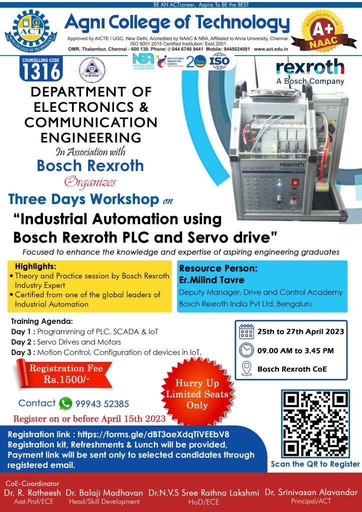 Three days workshop on Industrial Automation using Bosch Rexroth PLC and Servo Drive