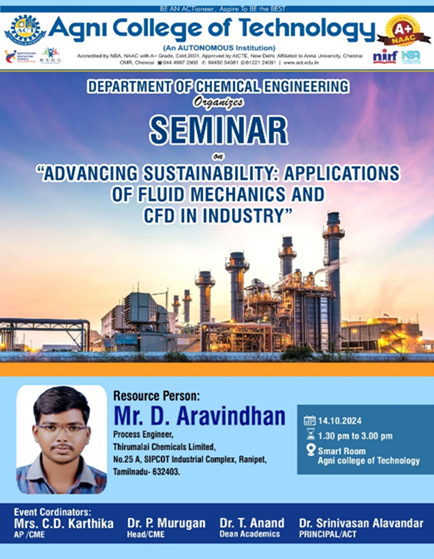 Chemical Engineering Seminar on Advancing Sustainability: Applications of Fluid Mechanics And CFD in Industry Read More » January 6, 2026