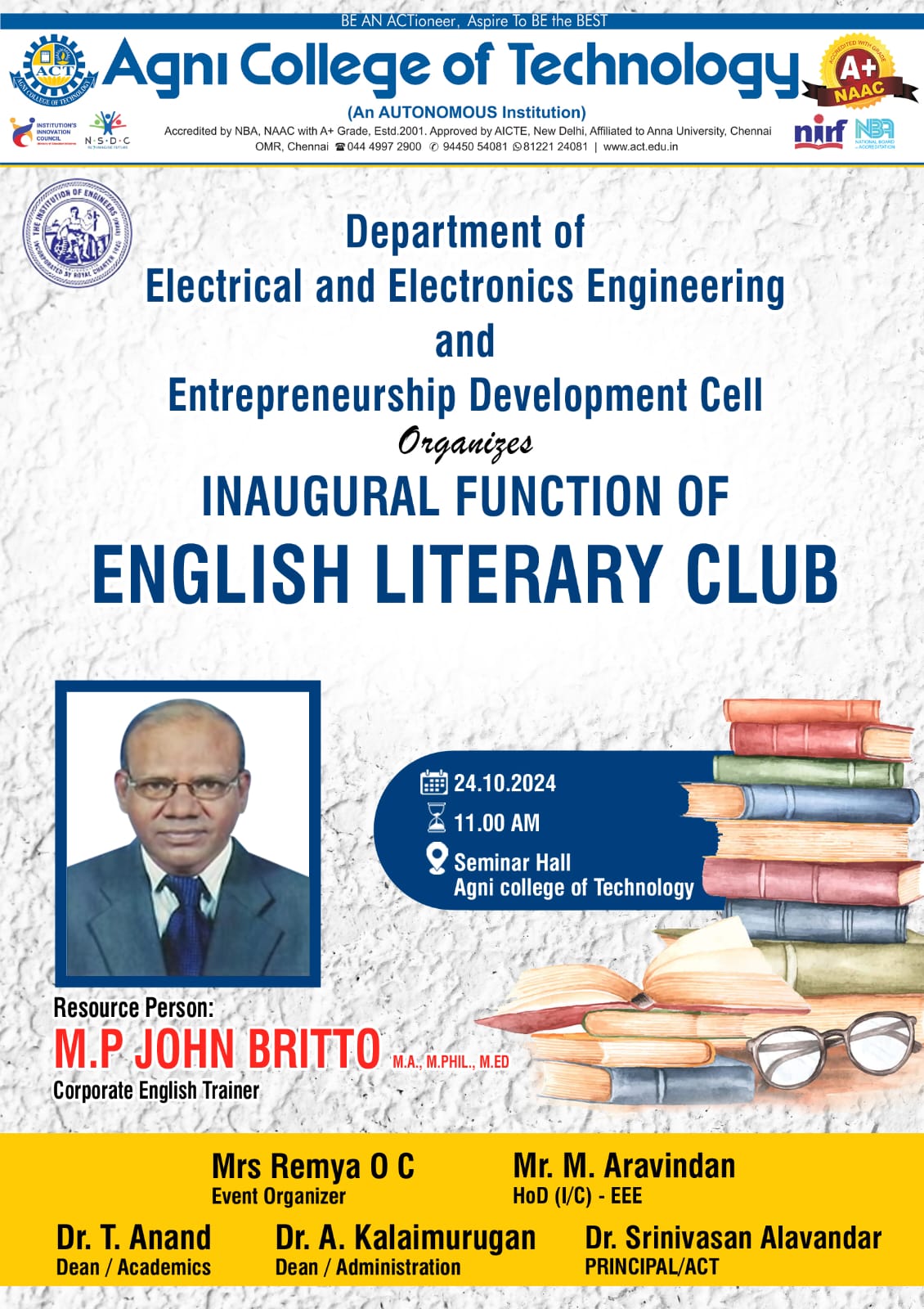 Electrical And Electronics Engineering Inaugural function of English Literary Club Read More » October 24, 2024