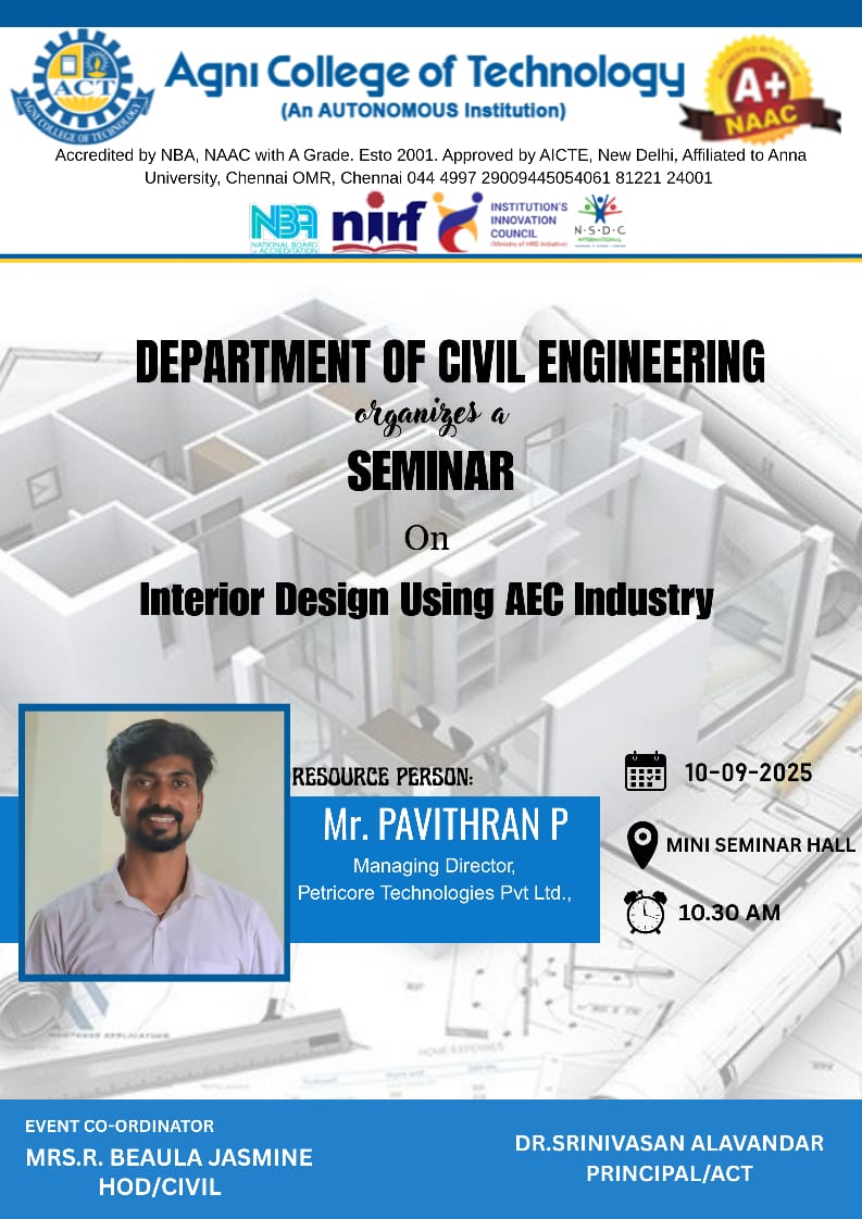Civil Engineering Seminar on The Future of Quantity Surveying: Trends and Careers Read More » November 9, 2024