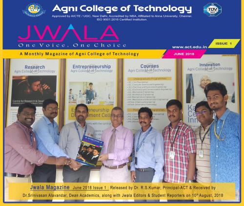Jwala Magazine : June 2018 Issue 1, Released by Dr. R.S.Kumar, Principal-ACT & Received by Dr.Srinivasan Alavandar, Dean Academics, along with Jwala Editors & Reporter, on10th August, 2018 Click here to Download : Jwala Magazine 2018 Issue#1