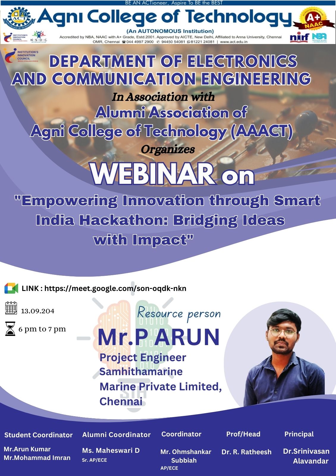 Webinar on Empowering Innovation through Smart India Hackathon: Bridging Ideas with Impact