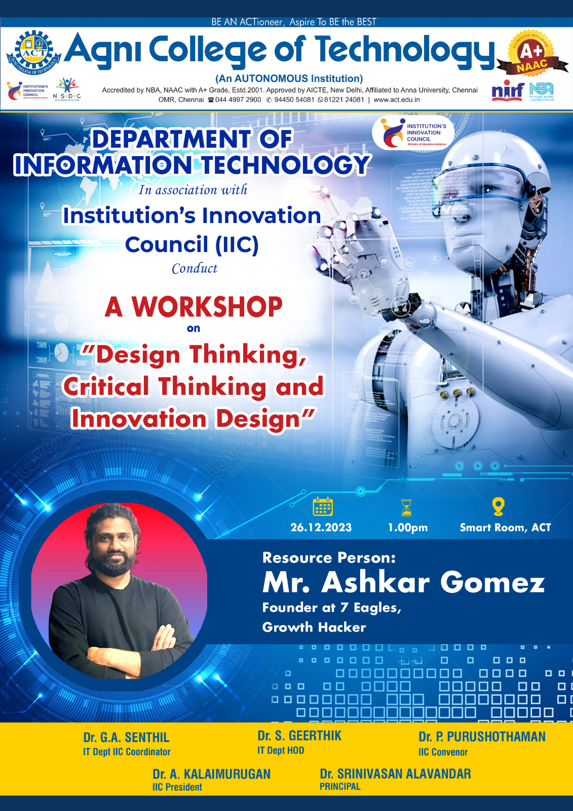 Workshop on Design, Thinking, Critical Thinking and Innovation Design