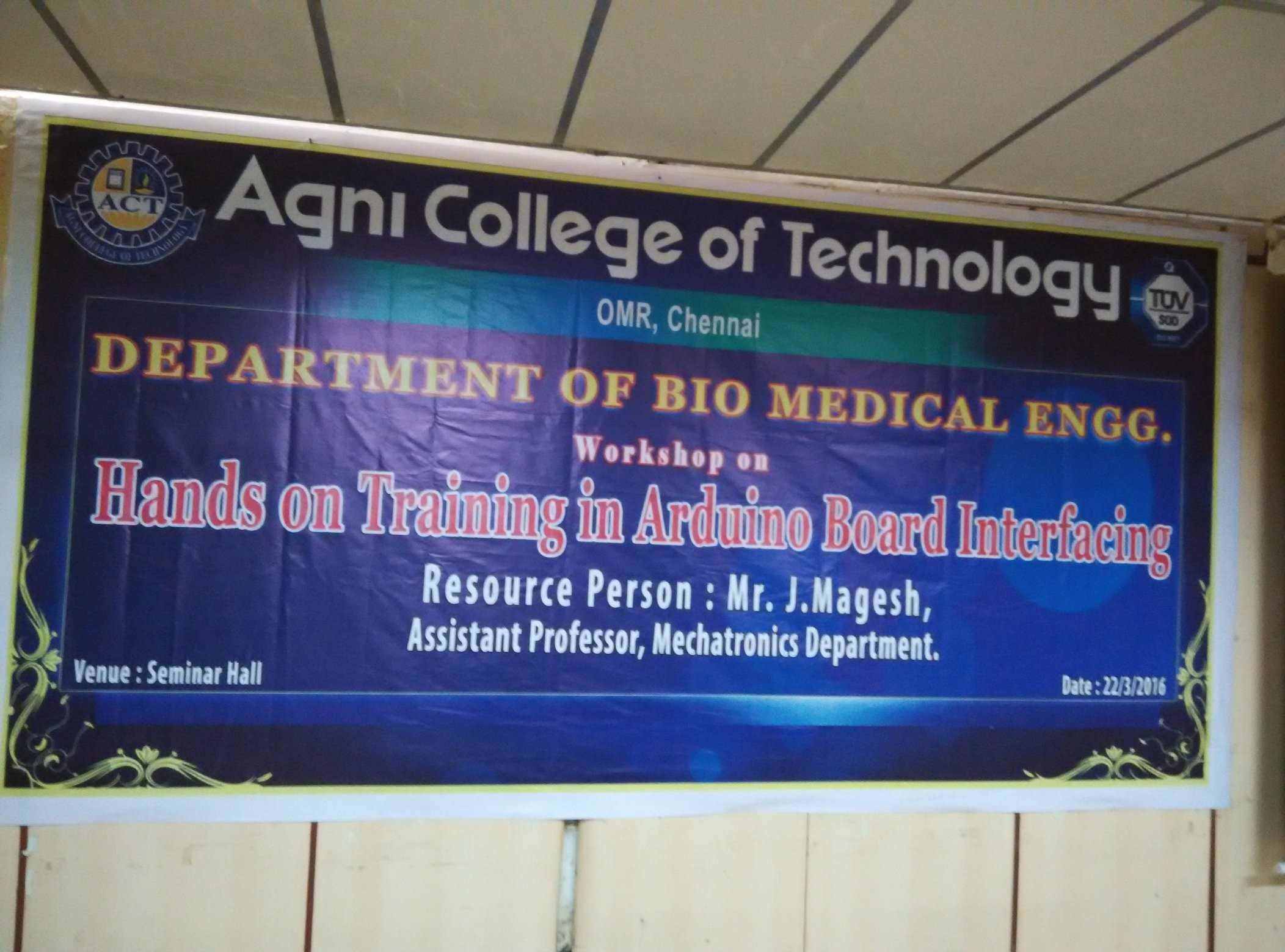 A workshop titled ‘Hands on practice in Arduino board interfacing’ was conducted in the Biomedical Department on 22/03/2016. Mr. Magesh, Assistant Professor, Mechatronics Department was the resource person. During welcome address Mrs.S.Ambika, Head of the Department gave information regarding Arduino board and its uses in Biomedical field. Principal Dr.S.R.R.Senthil Kumar addressed the students and advised…